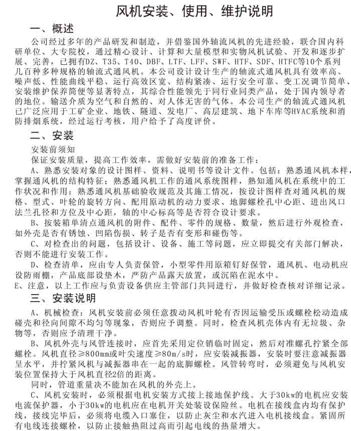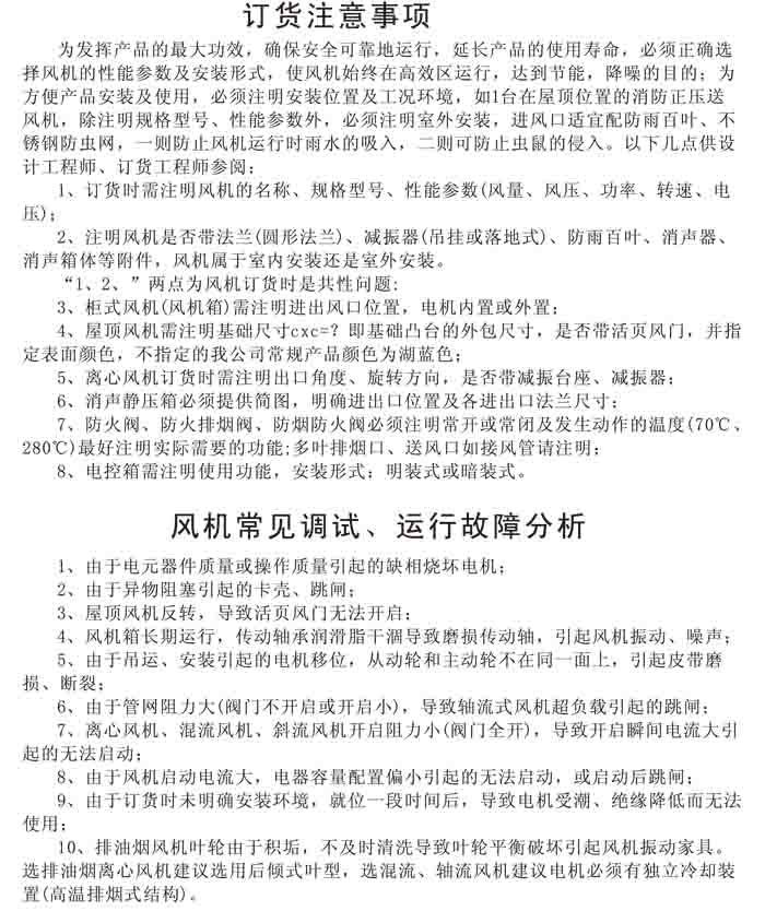 產(chǎn)品展示 首頁 > 產(chǎn)品展示 > 風機選用參考、安裝維護使用說明、常見故障分析、訂貨注意事項